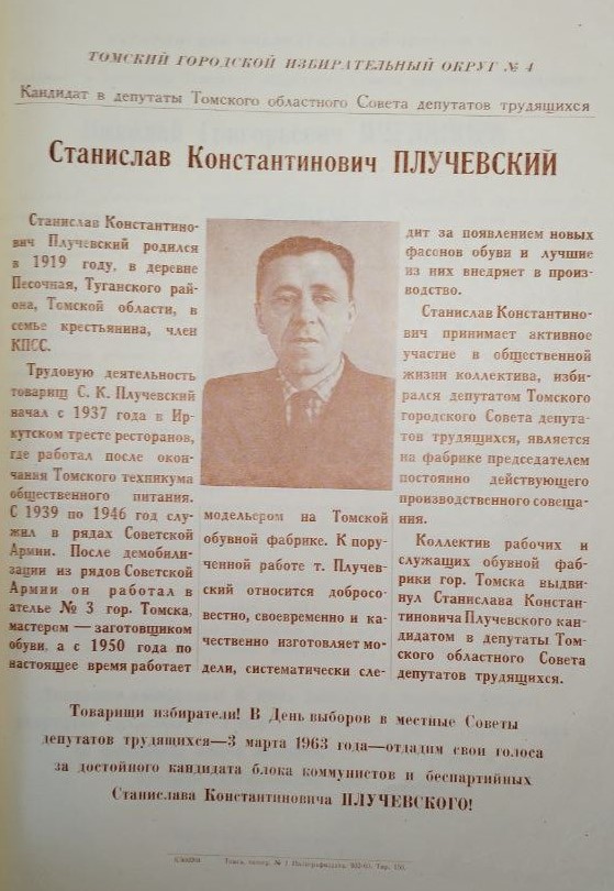 Предвыборная листовка С.К. Плучевского. Источник: Государственный архив Томской области