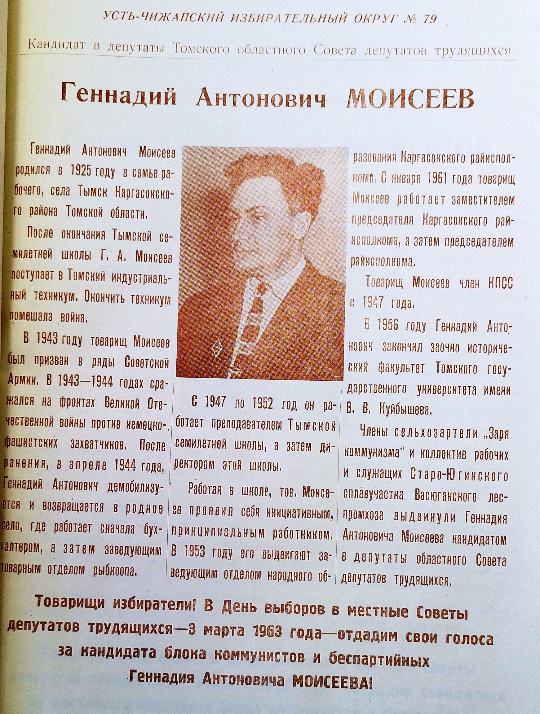 Геннадий Антонович Моисеев, кандидат в депутаты Томского областного Совета, 1963. Источник: Государственный архив Томской области