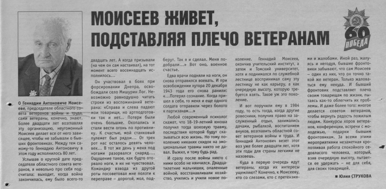 Геннадий Моисеев. Пулеметчик, педагог, председатель областного Совета ветеранов