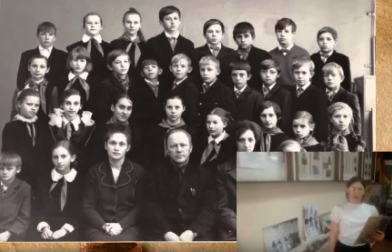 В.Е. Брюханов с учениками и педагогами школы в кемеровском поселке Кедровка. Источник: Музей средней общеобразовательной школы № 70 г. Кемерово