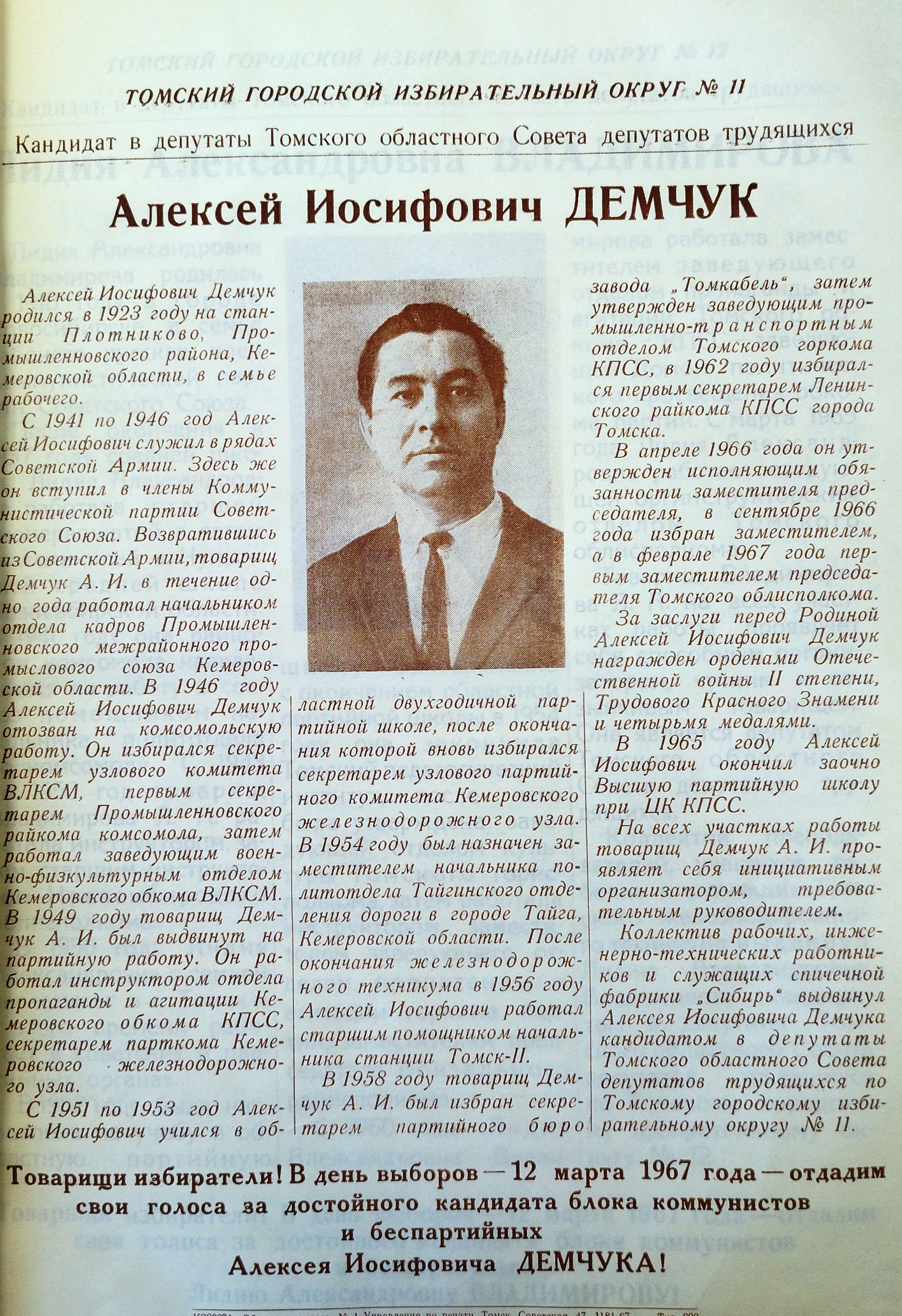 Предвыборная листовка Алексея Демчука. Источник: Государственный архив Томской области