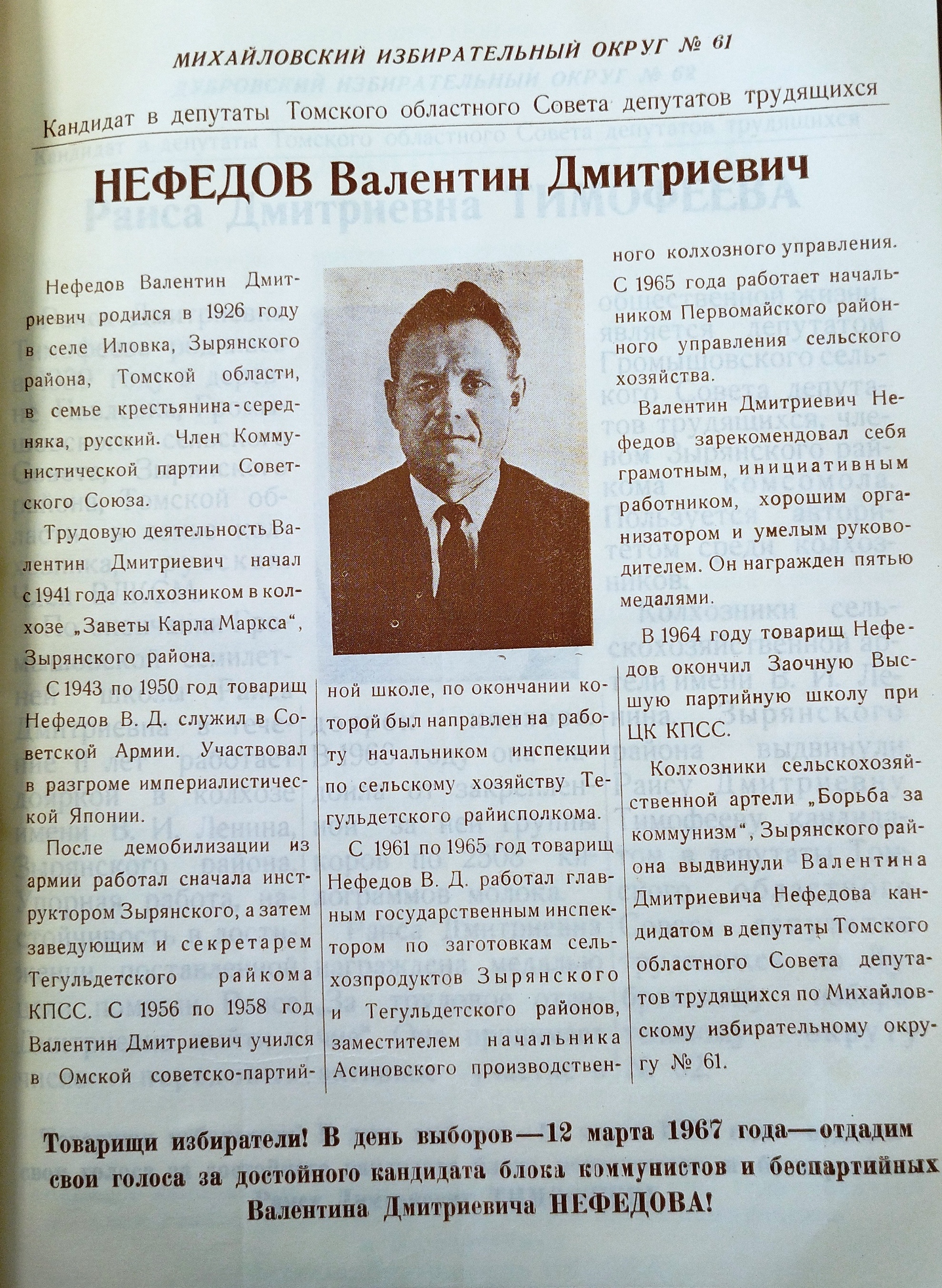 Предвыборная листовка Валентина Нефедова. Источник: Государственный архив Томской области