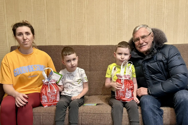 Депутат поздравил Ярослава, Мирона, их маму и дедушку с наступающими Новым годом, пожелал всей семье крепкого здоровья, благополучия, стойкости, добра и мира.
