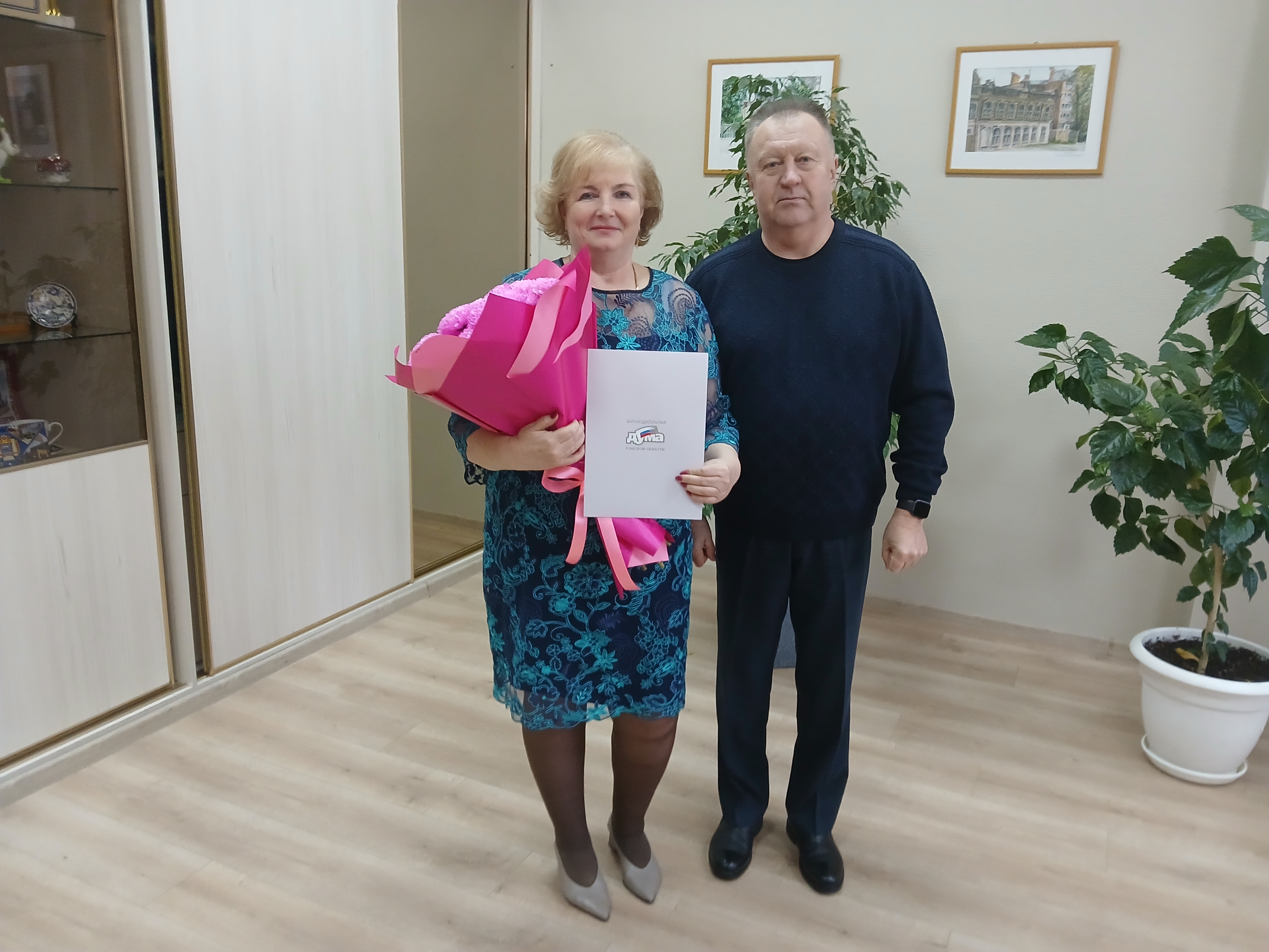 За значительный вклад в развитие региональной системы образования, высокий профессионализм и многолетний добросовестный труд депутат вручил Благодарности Законодательной Думы Томской области и памятные подарки.
